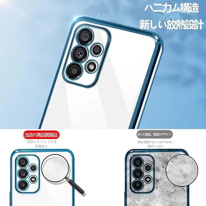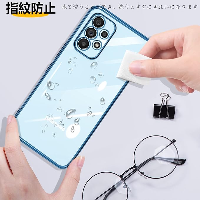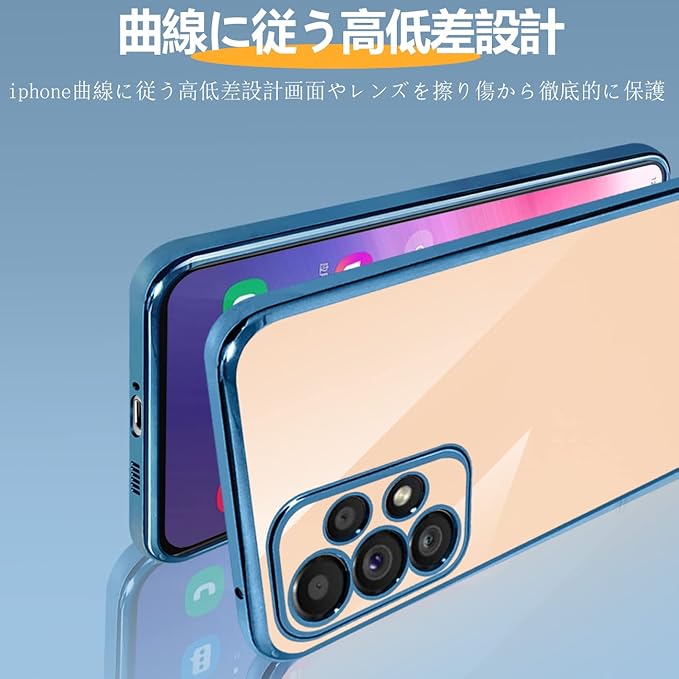 SAMSUNG Galaxy A53 5G ケース クリア 薄型 耐衝撃 SC-53C SCG15 透明 カバー 軽量 TPU メッキ加工 ソフトケース 人気 保護カバー(ブルー) | KAZESHOP
