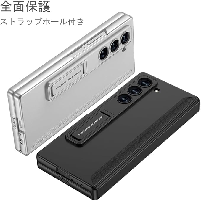Galaxy Z Fold6 ケース ガラスフィルム付き Samsung ギャラクシーZ フォールド6 / SC-55E 用 カバー Uovon スマホケース 薄型 ヒンジ保護 軽量 スタンド付き 全面保護 カメラレンズ保護 おしゃれ 人気 ストラップ穴付き ・ ブラック | KAZESHOP