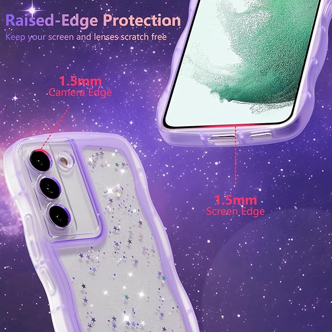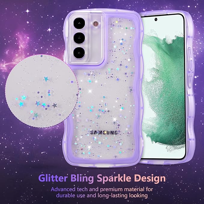 ZTOFERA Samsung Galaxy S22 5G 用波状のケース 透明 クリアケース サムスン ギャラクシー S22 ウェーブケース 可愛い おしゃれ キラキラ 星 スマホケース ソフトTPU スターパターン 軽量 耐衝撃 人気 韓国 S22 ケース 女子 女性 携帯電話カバー (パープル) | KAZESHOP