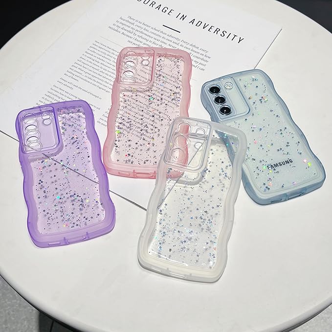 ✨【独特なデザイン】かわいいなグリッタースターデコレーションがあなたの携帯電話をより魅力的にします!波型のフレームが快適なグリップを提供。クリアな背面は、携帯電話本来の美しさを表現しています。 女の子と女性への素敵な贈り物。
