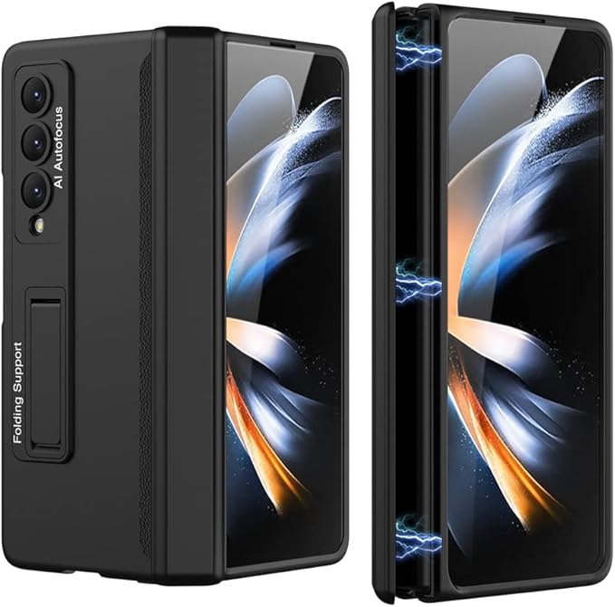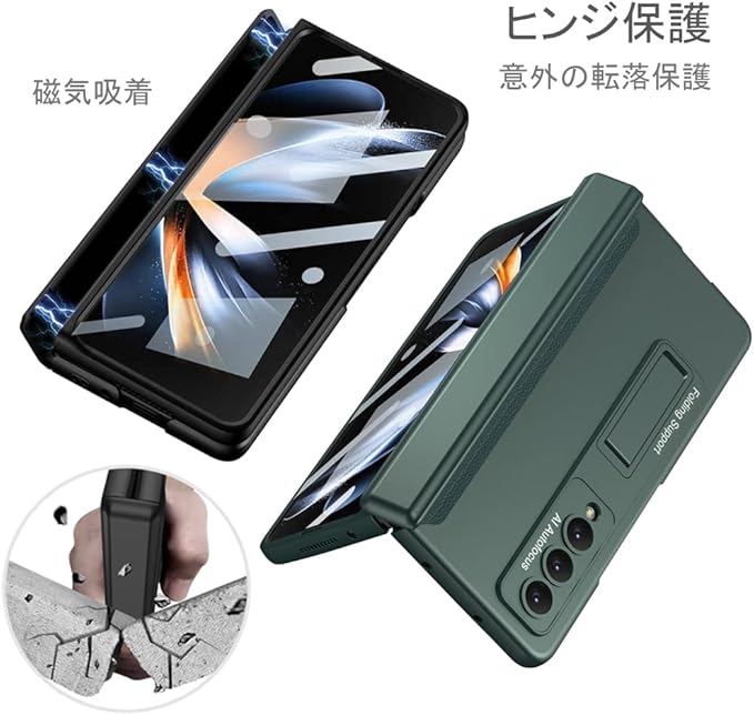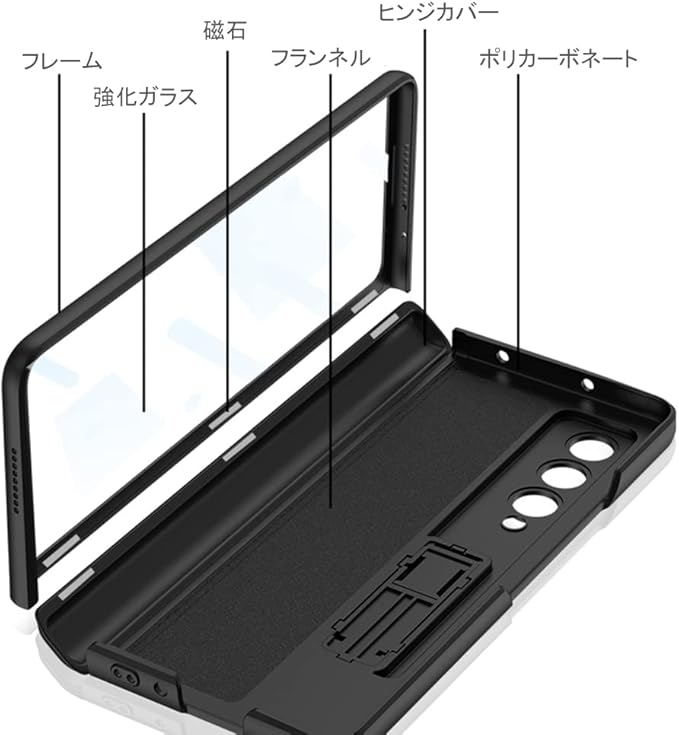 Galaxy Z Fold4 ケース ガラスフィルム付き Samsung ギャラクシーZ フォールド4 5G 用 カバー Uovon スマホケース 薄型 ヒンジ保護 軽量 スタンド付き 全面保護 カメラレンズ保護 おしゃれ 人気 ストラップ穴付き ・ ブラック | KAZESHOP