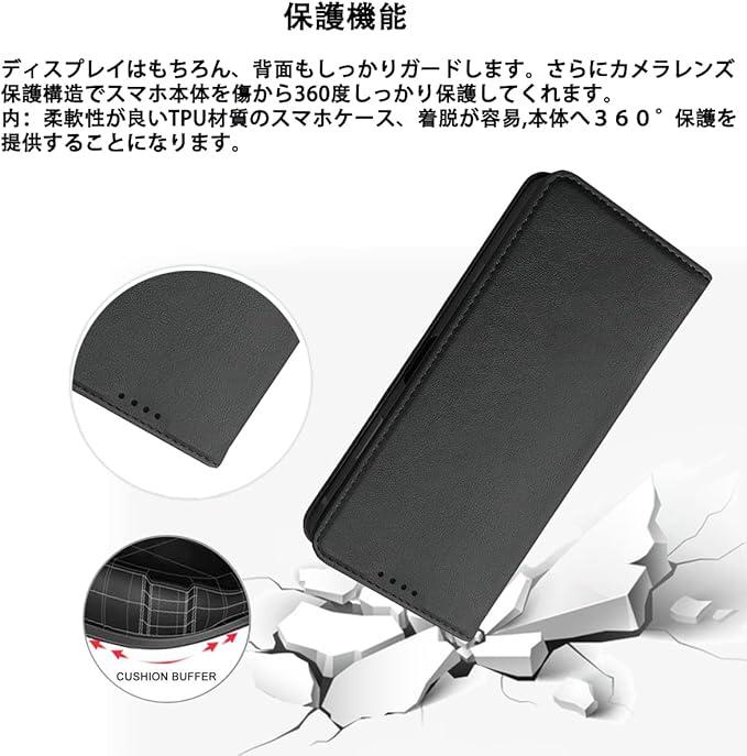 【多機能】:①[スタンド機能が付いて]:横向いて斜めに立てて、お好きな角度を調整できます。②[360度保護]:内蔵マグレット機能付きの手帳型カバーで、大切なディスプレイへのキズ、汚れ、衝撃も保護できます。③[マグネット開閉式]:携帯ケースの左側の裏に内蔵があり、両面カバーをしっかり固定することができます。