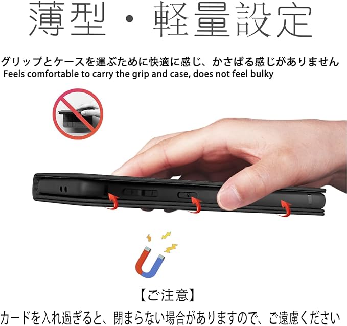 【カードポケット付き】:財布型ケースとして、名刺やお札などを入れるカードポケットがつき、ちょっとしたお出かけにもスマホケース一つでOK!日常生活に便利です。ただし、カードを入れ過ぎると、閉まらない場合がありますので、ご遠慮ください。