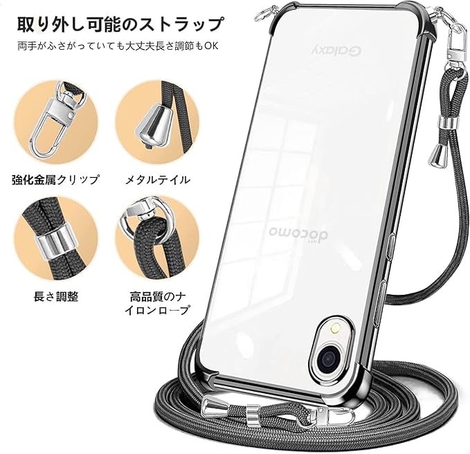 PAILAIMEN galaxy A22 ケース クリア ショルダー耐衝撃カバー ストラップ Galaxy SC-56B SCG13 スマホケースギャラクシーa22 カバー サムスン 肩掛け 斜めかけgalaxyA22 縄掛けケース透明 TPU ストラップ付き 薄型 軽量 紐付き 取り外し可能 携帯ケース(ブラック) | KAZESHOP