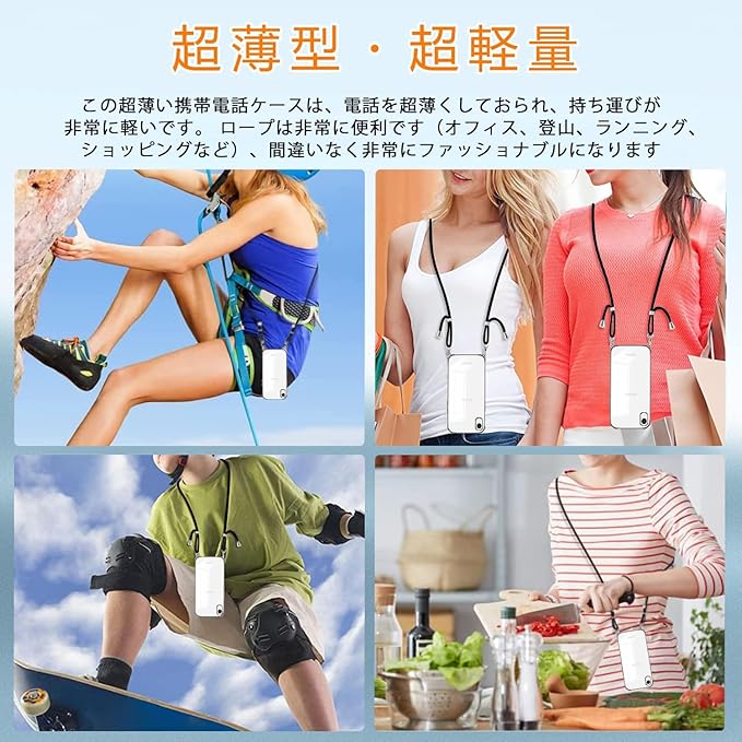 【抜群のフィット&柔軟】 ケースは柔らかいTPU素材を使用し、本体との擦れを防げ、ケースの着脱も簡単にできます。PCやガラス素材よりも柔軟ですが。落下時には衝撃力を分散し、大事なデバイスを全面保護します。また、ケースは型どりを緻密に実施しており、本体に完璧にフィットするとともに、持ったときの圧倒的なフィット感も実現しています。柔らかいナイロンストラップで首を快適に保ち、ストレッチの長さを調整でき、ストラップを取り外して、電話ケースを単独で使用できます。