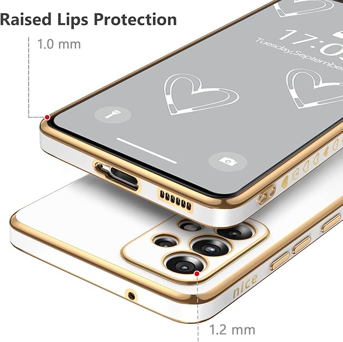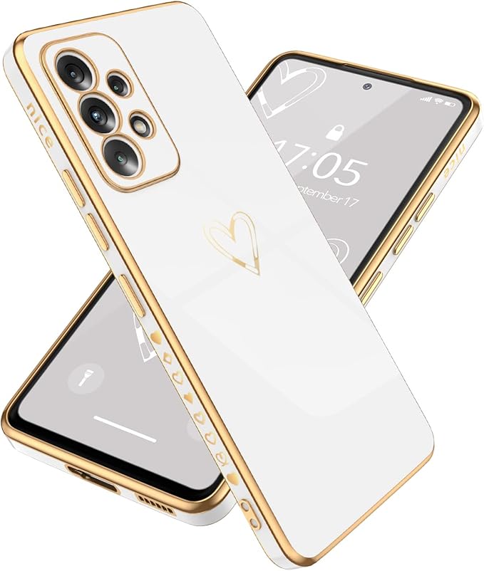 QLTYPRI Samsung Galaxy A53 5G ケース SC-53C/SCG15 ケース かわいい メッキラブハートソフト TPU カバー 女性 人気 軽量 スマホケース レンズ保護 落下防止 カバー Qi ワイヤレス充電対応 携帯電話ケースギャラクシーA53用カバー - ホワイト | KAZESHOP