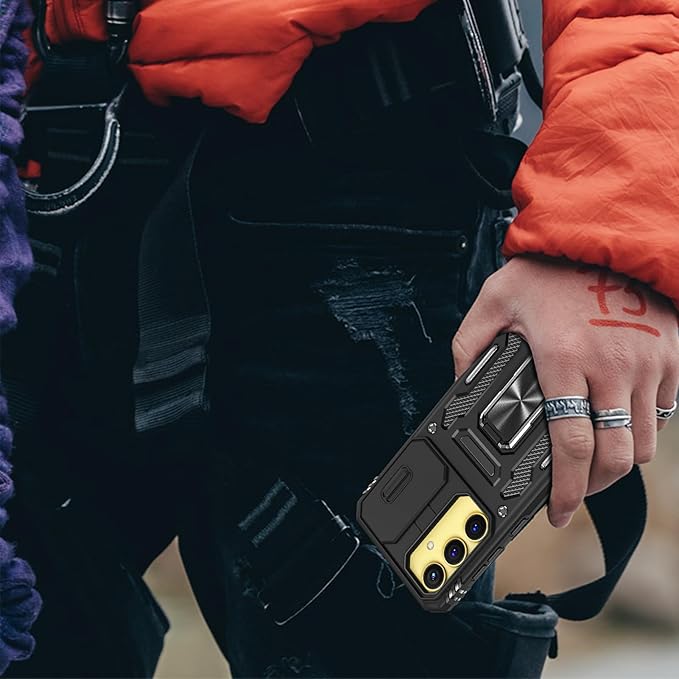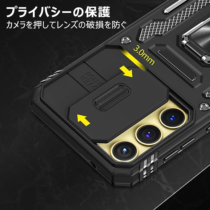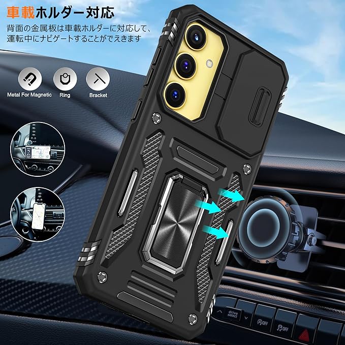 Galaxy S25 用 ケース リング付き 衝撃吸収 耐衝撃 スタンド機能 米軍MIL規格 ギャラクシーs25 用ケース 全面保護 360 回転 滑り落ちにくい 人気 おしゃれ 携帯カバー 黒 WY95-106 | KAZESHOP