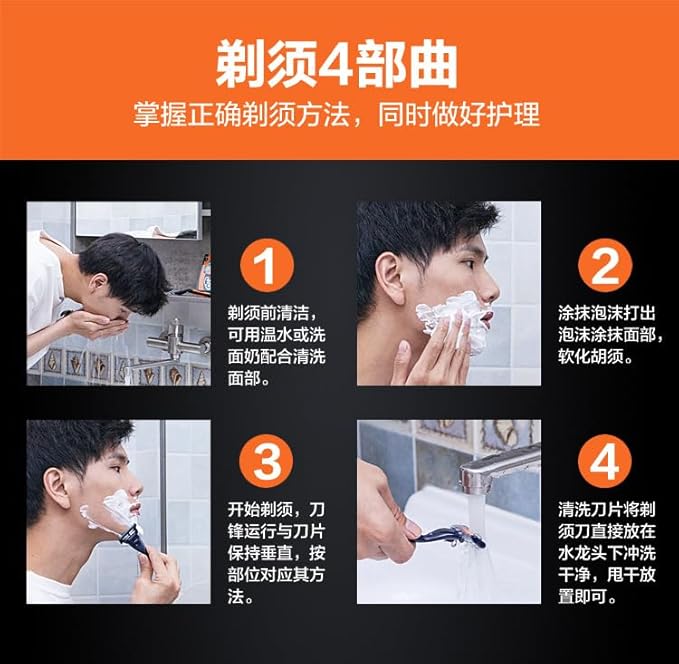 【刃は鋭利で、剃りはきれい】刃の部位には良質な鋼材が採用されており、鋭利さと使用耐久性の面で優れており、異なる環境下で異なる程度の剃り体験に適応することができる。髭剃りの時間と効率を高めるだけでなく、同時に髭剃りの清浄度も保障されています。