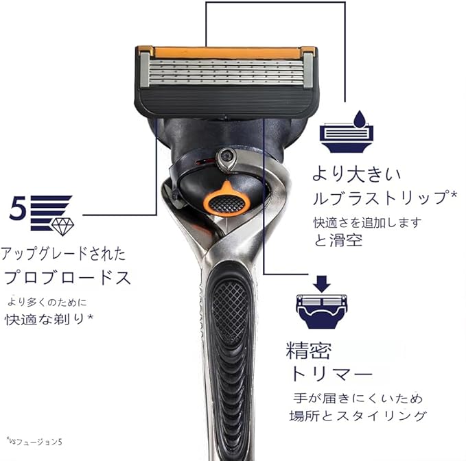互換性:ジレット プロシールド、プログライド、フュージョンなどの5+1枚刃カミソリに対応する高品質な替刃です。