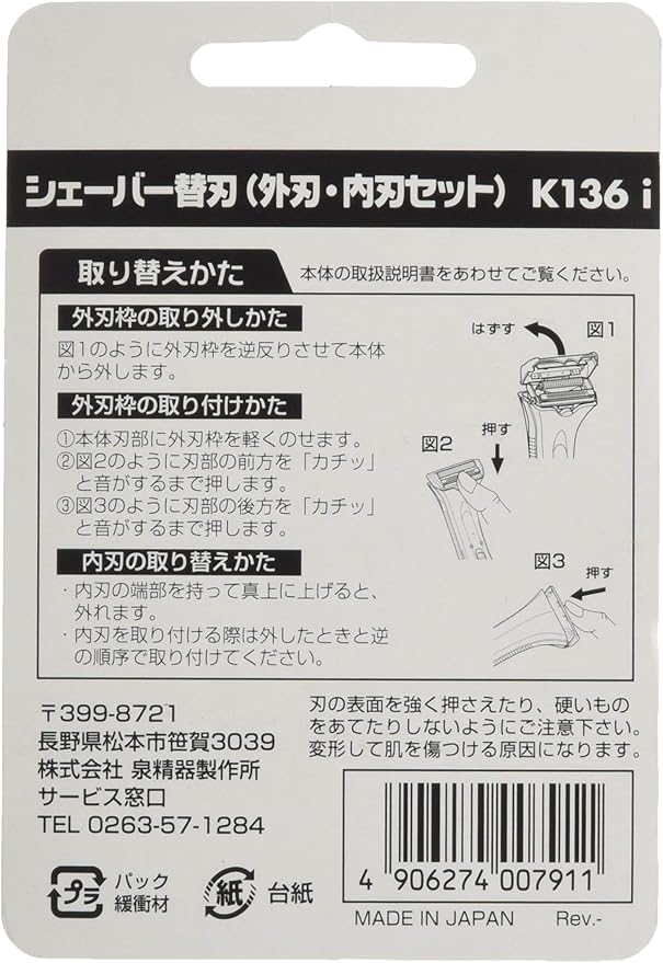 本体重量 : 約3g(外刃)/約1g(内刃)