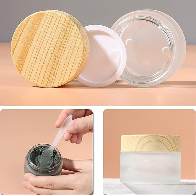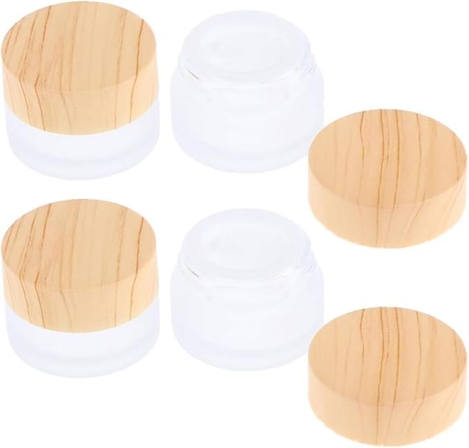 siawadeky 詰替え用 ガラス瓶 5個セット クリームボトル クリームケース スクラブクリームボトル 化粧品用ボトル クリーム保存 すりガラス瓶 パウダーケース コスメ用 詰替え容器 クリアクリームジャー 木目蓋付き サブパッキングボトル 10g | KAZESHOP