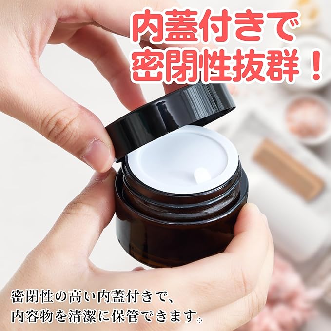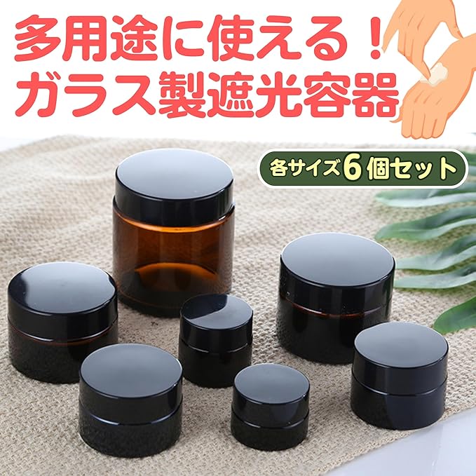 ✅【遮光ガラス製クリームジャー6個セット】ハンドクリームやアロマクリームの保存や詰め替えに最適です。しっかり密閉できる内蓋付きで、旅行や出張時の持ち運びにも便利です。
