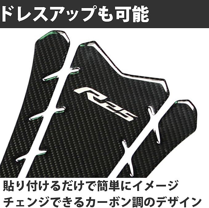 カーボン調デザインなのでドレスアップ用としても活用できる:カーボン調のかっこいいデザインのバイク用タンクパッドとなっておりますので、ドレスアップ用のアクセサリーとしても活用することができるといえます。
