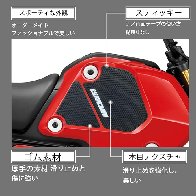 GROM タンクパッド ホンダGROM MSX125 2021-2023 GROM(グロム) msx125 グロム 125 専用 プロテクションタンクパッド タンクパッド ニーグリップ ラバー カスタム パーツ 傷防止 黒 ブラック タンクプロテクター あす楽 グロム125(GROM logo) | KAZESHOP