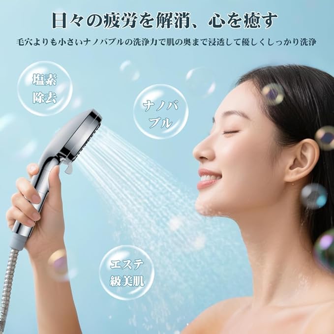 シャワーヘッド マイクロナノバブル 塩素除去 高洗浄力 手元止水 高水圧 極細水流 毛穴ケア ヘアケア 汚れ除去 保湿 ミスト 5段階モード 国際汎用基準G1/2 最大90%節水 塩素除去フィルター付き | KAZESHOP