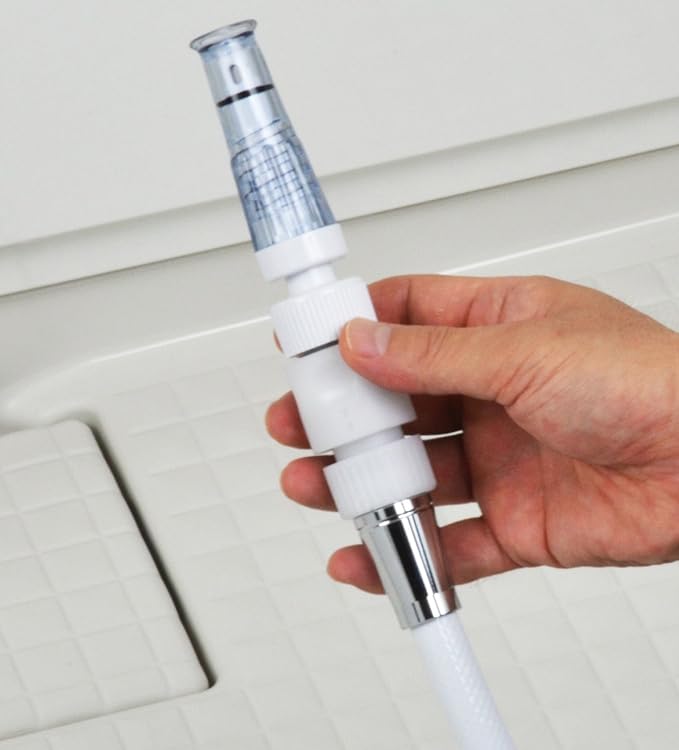 バランス釜・シングルレバー混合栓・逆流防止機構がない混合栓には使用できません。