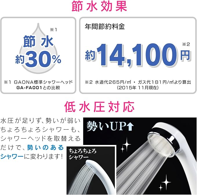 ・従来型シャワーヘッドと比べて約30%の節水効果(同メーカー比)、毎日の生活で節水を意識せずに節約できる