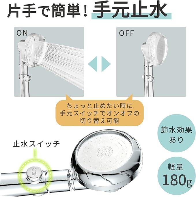 ✅【超軽量・お手入れ簡単】180gの超軽量デザインで手が疲れる心配もなく快適にシャワーを使って頂けます。ヘッド部分は分解でき水洗いできるのでお手入れも楽々簡単です。