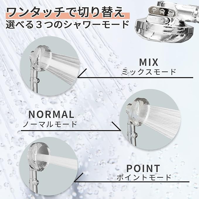 ✅【水流切替】気分で選べる3つのシャワーモードがワンタッチで切り替えできます。ノーマルモード・ミックスモード・ポイントモードで毎日のバスタイムを快適に