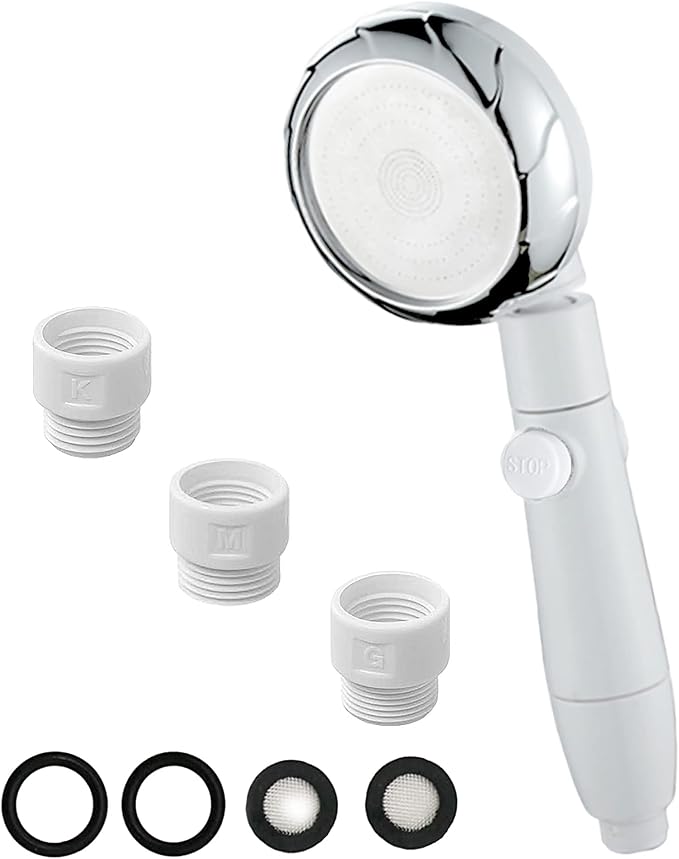 シャワーヘッド 節水 【取付簡単 アダプターセット】マイクロナノバブル 高水圧 シャワー シャワーミストヘッド 手元で水止め/水流切り替え 超軽量 360 回転 国際基準G1/2 (シルバーホワイト) | KAZESHOP