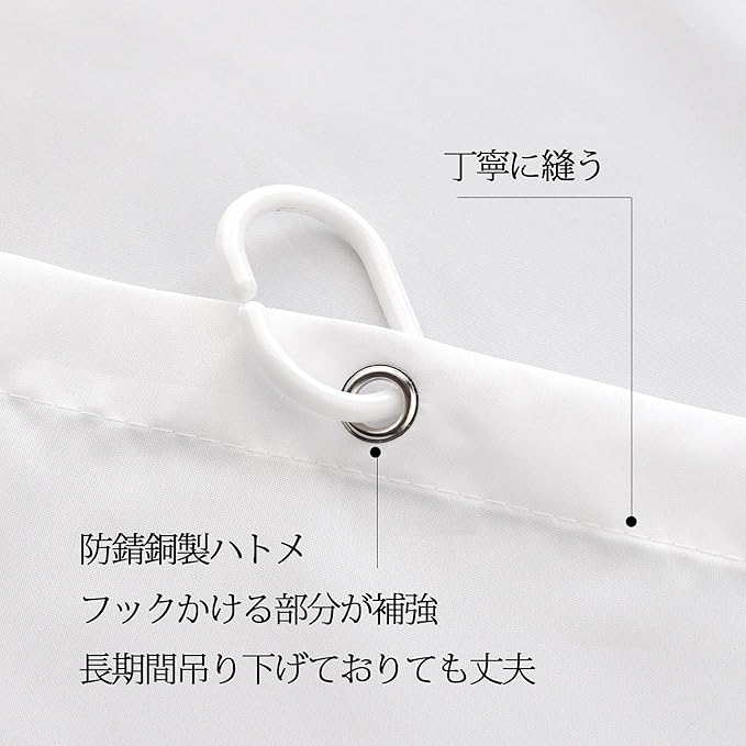 【耐久性あり・洗濯可】補強されたトップヘッダーに沿て防錆ハトメが付き、変形しにくく、丈夫で長持ちします。チェーンウエイト入り重さのある裾は、カーテンの位置を適切に保つし、フィット感がいい。お手洗い、洗濯機使用可能。