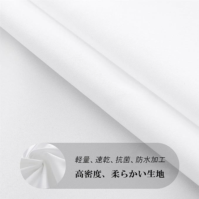 【防水防カビ加工、清潔感あり】防水防カビ処置済みの100%ポリエステル製により、衛生的で清潔感に保つ、ポリエステル素材の特性のため、ビニールのようなにおいがしない、やわらかくて肌触りよい、赤ちゃんにも安心使用でき、バスタイムが快適になるユニットバスカーテンです。