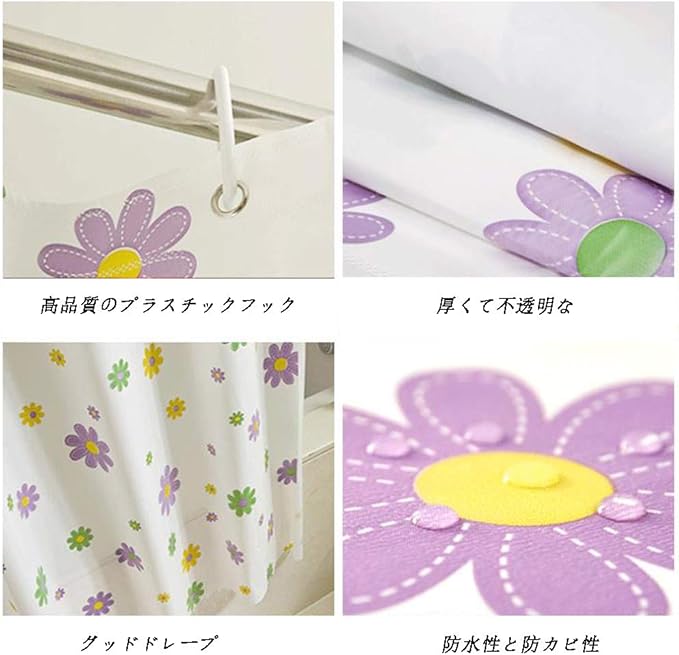 Meioro シャワーカーテン バスカーテン PEVA 小さな花 半透明 防水 防カビ 加工 厚い 浴室 カーテン 洗面所 ユニットバス 取付簡単 サイズ選択可能 (180*180cm) | KAZESHOP