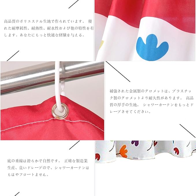 多様な用途:このシャワーカーテンはシャワーに適しています、屋内外を問わず使用可能であり、防水性と遮光性に優れているため、さまざまなシーンで活躍します。使い勝手の良さとデザイン性の両方を兼ね備えたこのアイテムは、お客様のライフスタイルやインテリアに華やかさと便利性を加えてくれることでしょう。