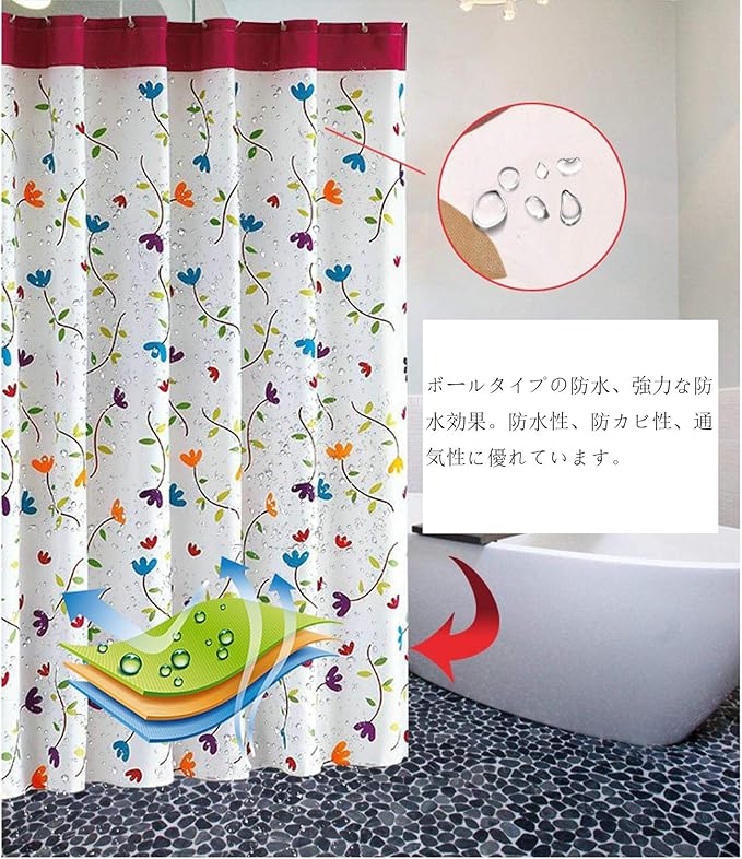 プライバシー保護:このカーテンは厚に優れ、プライバシーを守りながらリラックスしたバスタイムを楽しむことができます。水漏れを防ぐ優れた防水性も備えており、お風呂を楽しむ際に浴室が濡れる心配はありません。