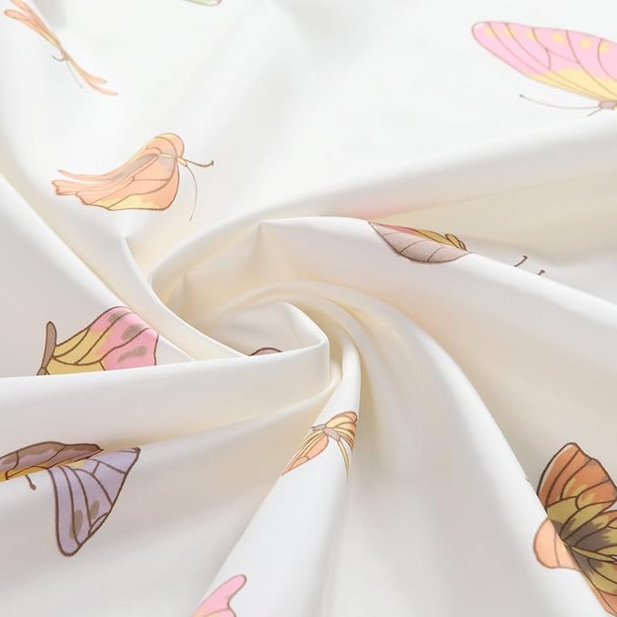 カラー蝶プリントのクリーム色100%ポリエステル生地には、ポリエステル100%の生地が绮丽な色に仕上げられています