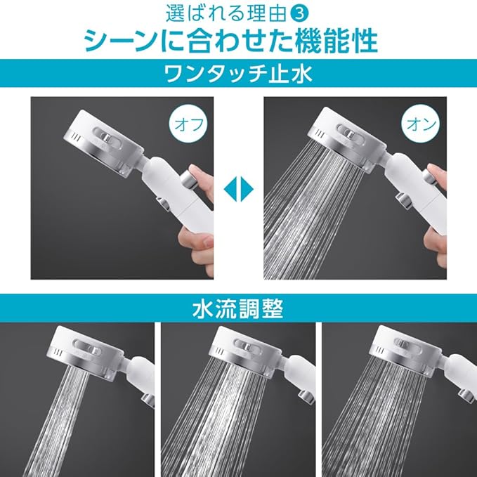 ✅【節水最大80%】 極細穴で少量の水でも勢いのある水流に! 手元止水ボタン(ストップ機能)付き! 水道代ガス代を節水節約!