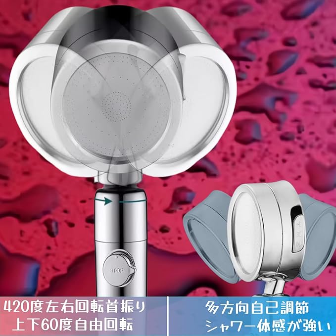 1.【多方向回転調整水流】420度左右回転首振り 上下60度自由回転 多方向自己調節 シャワー体感が強い,十分なシャワーを浴びて、全身の疲れを洗い流します
