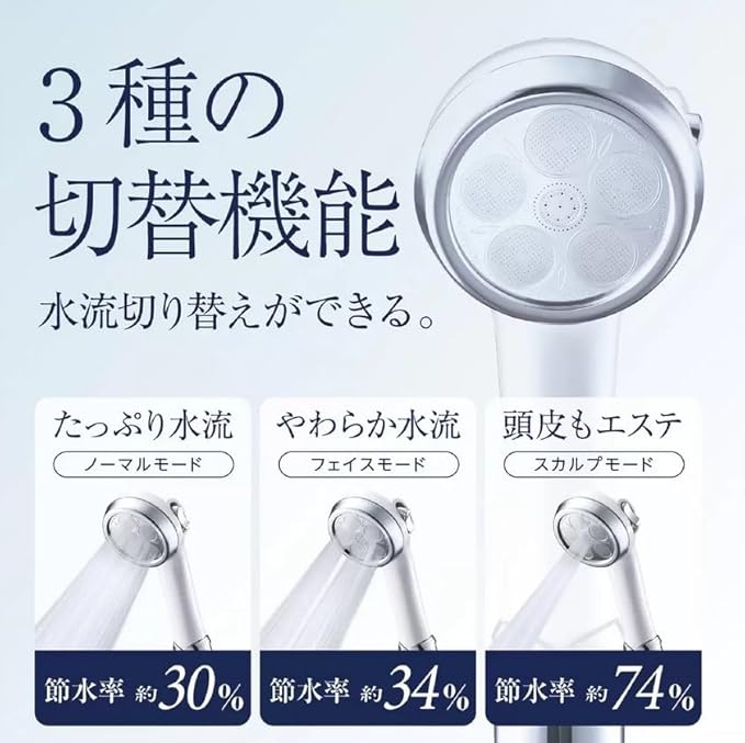 洗浄力・保温力・保温力・節水力 3つ(ノーマルフェイススカルプ)の水流モード搭載