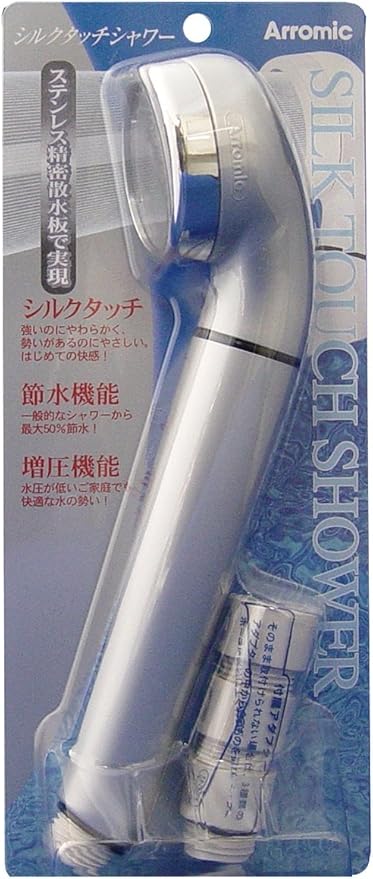 「アラミック 節水シャワーヘッド シルクタッチシャワー シルバー STSL-24N」は、節水・高水圧なシャワーに変える取り付け簡単なシャワーヘッドです。シャワーを取り替えるだけで水道・ガス代最大50%削減。水圧の低いご家庭でも勢いのある水流の高水圧なシャワーに。ステンレンス性見る散水板が、快適さと節水を両立させています。工具不要でご家庭のほとんどのシャワーに取り付けられます。合わない場合は付属のアダプターで取り付けられます。(3種類のアダプター付き)【重量】 180g【カラー】 シルバー【サイズ】 112*264*63mm【製造販売元】 アラミック【原産国】日本