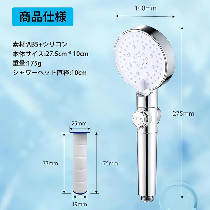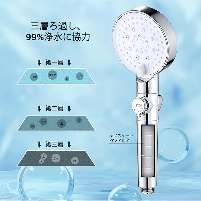 【極細水流】超微細な泡が、肌の角質や毛穴のなかの汚れなどを隅々まで洗浄してくれ、高い洗浄効果を実感することができます。散水板は極細穴を採用して、空気対流の面積を縮んで、細くても高速な水流を実現しています。微細ミストシャワーは通常シャワーと比べると 肌への刺激が約半分!顔などデリケートな部分へ負担をかけず洗い流すことができます