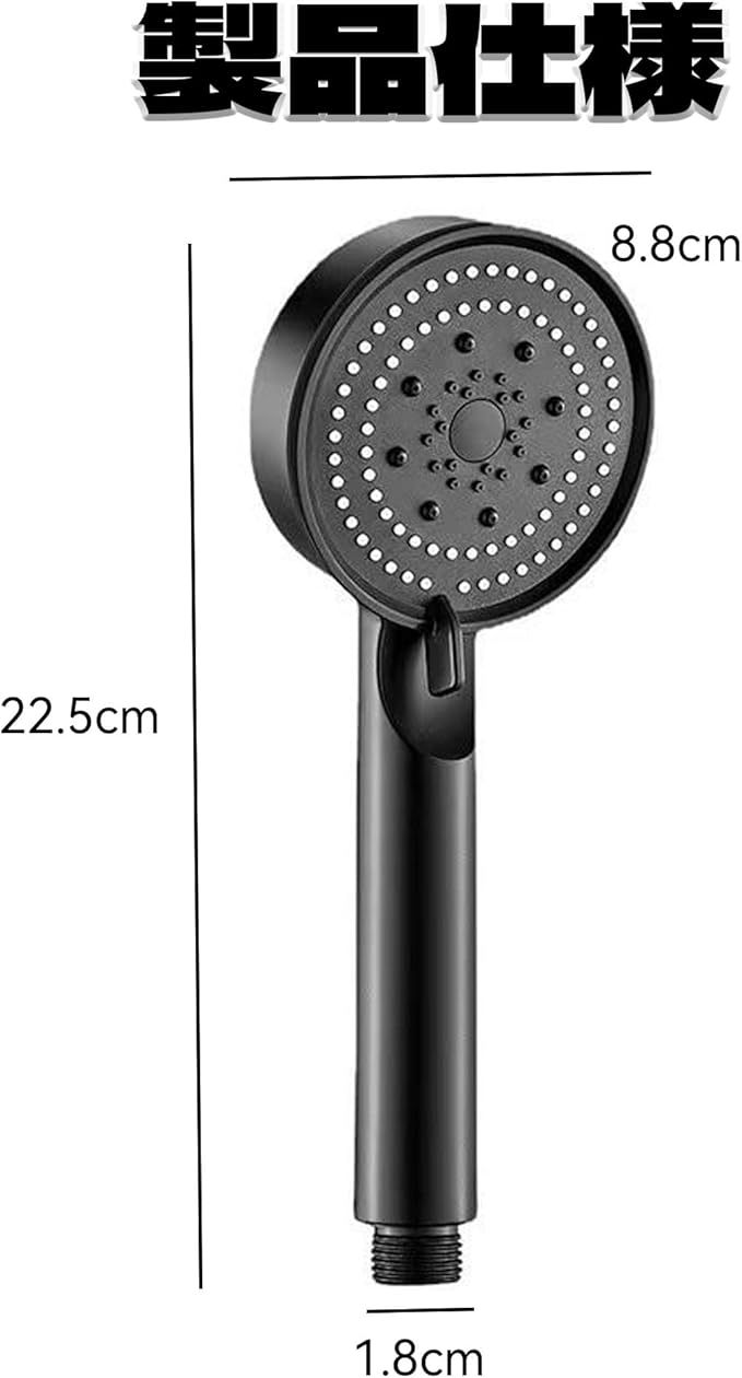 【製品仕様】シャワーヘッドはA/Bの2タイプから選べます。Aタイプのサイズ:22.5*8.8cm、重量:115g、Bタイプのサイズ:29*8cm、重量:250g。色:ブラック/シルバー/スターライトグレー/ブラックパープル。