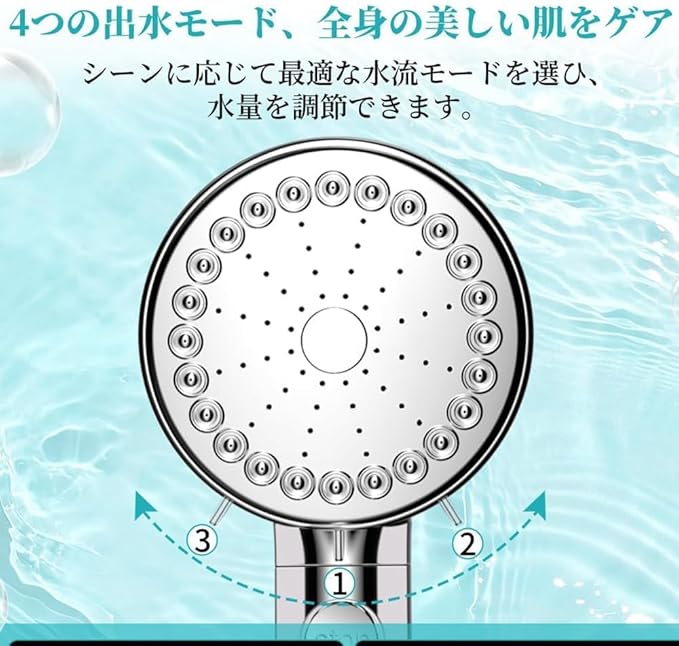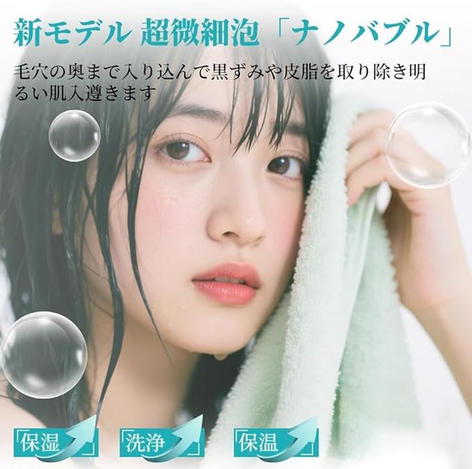 【3つの水流モード・マイクロナノバブル】シャワーヘッド一つで全身をケア、浴びる部位や目的に合わせて選べる3つの水流モードで手元で簡単に切り替えできます。また、ミストモードが顔に当てても低刺激で気持ちのよい肌あたりで顔を洗えます。とくに顔やデリケートな部位をやさしく洗いたいときに使うのがおすすめです。水流モードを使い分けることで、より効果的で快適なシャワーの時間を楽しめますよ。は先進のマイクロナノバブルテクニカルを採用し、水を超微細なナノバブルに変え、最大約15億個のバブルを生成します。毛穴よりもはるかに小さいマイクロナノバブル(1μm未満)が肌に深く浸透し、通常の水では落としきれない汚れや油脂を徹底的に除去し、残ったメイクもスッキリ。同時に、汚れをしっかり落としながら、肌の潤いと体温を保つ効果も期待できますので、入浴後も体が潤って暖かいです。