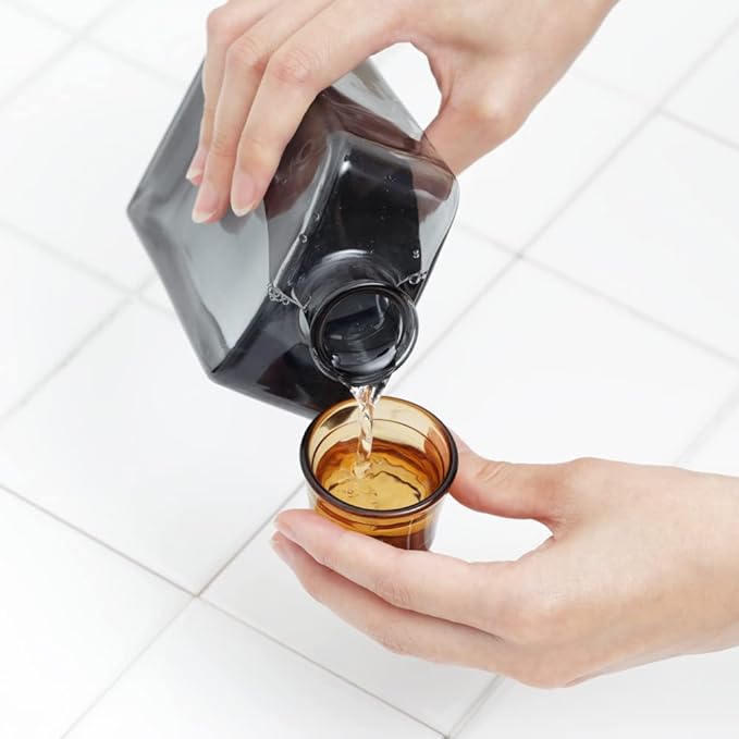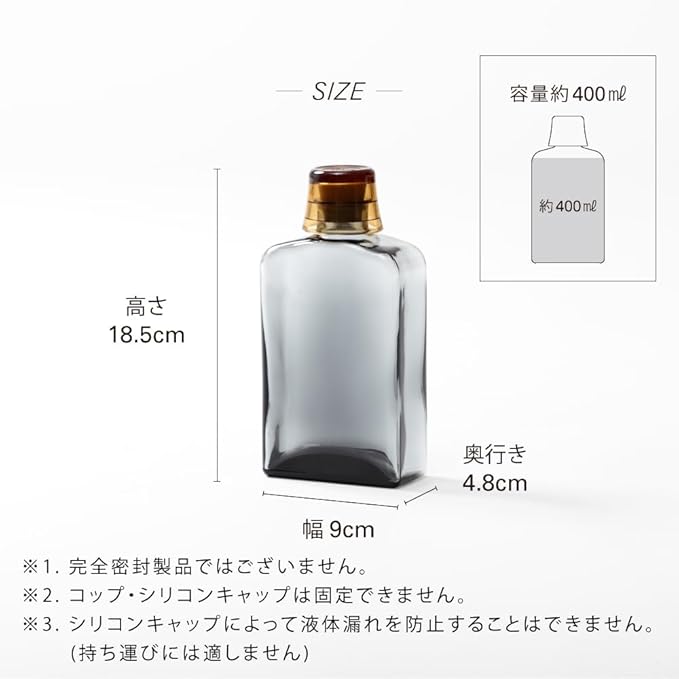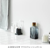 MOUTH WASH BOTTLE 見せて置けるマウスウォッシュボトル。 コップとシリコンキャップがセットになった詰め替え用のボトル。 コップには10㎖ / 20㎖のメモリ付き。 容量は400㎖。 attention ・完全密封ではございません。 ・コップや栓は、本体に被せることができますが、固定はされませんので扱いにはご注意ください。