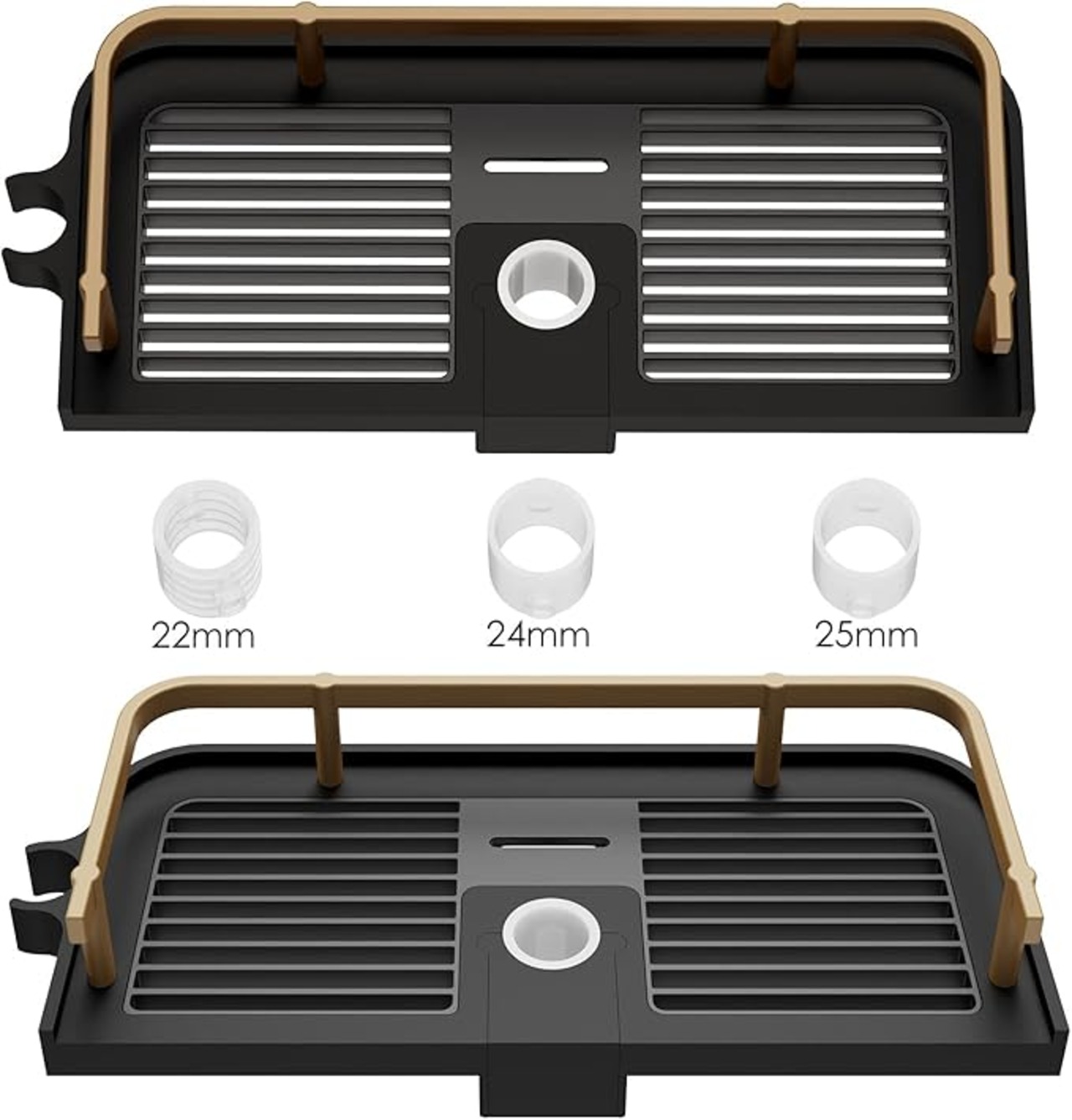 Linkidea ダイレクトシャワーキャディシェルフ、22/24/25 mmスライドバー用、バスルームシャワーラックオーガナイザースポンジホルダー、シャンプーソープ用、ステンレススチールガードレール付き、ハンギングフック付き (ブラック) | KAZESHOP