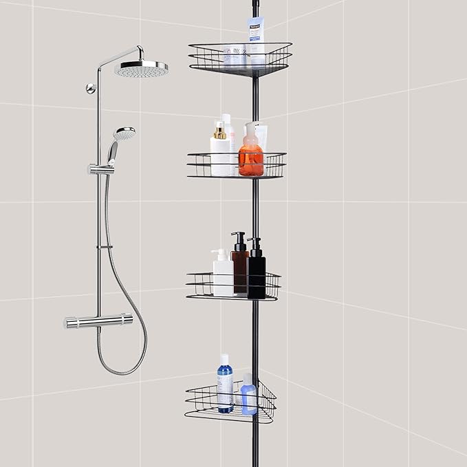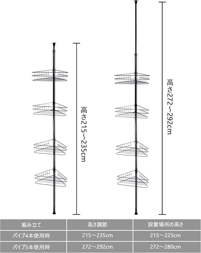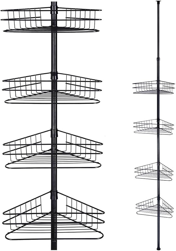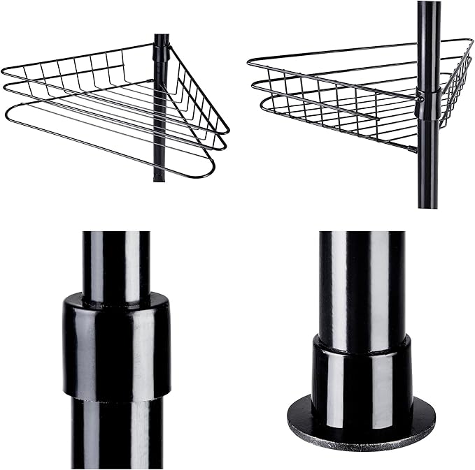 Yescom 浴室収納 コーナーラック 4段 つっぱり 高さ272~292cm/215~235cm 浴室 シャンプー ラック 浴室用ラック 突っ張り バス お風呂場 キッチン トイレ 収納 お風呂 シャワーラック 三角 バスラック ブラック | KAZESHOP