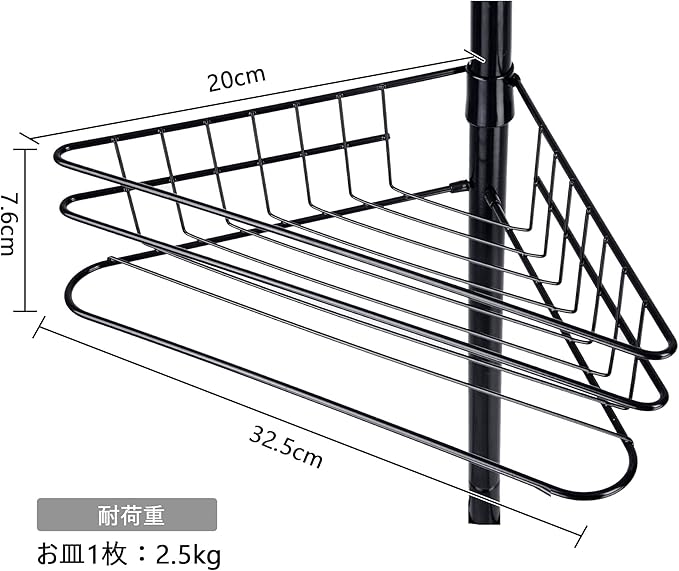 全体サイズ:約幅32.5 奥行20.5 高さ272~292cm(ボール5段)/215~235cm(ボール4段) 設置場所の高さ:272~280cm(ボール5段) 215~225cm(ボールB 1を除く) 材質:スチール(クロムメッキ) 重量:約2.27kg カラー:ブラック 耐荷重(棚1枚):2.5kg
