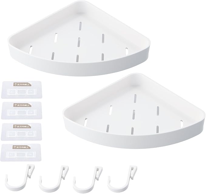 コーナー 棚 壁掛け シャワーラック 粘着式 壁に穴を開けない 棚 コーナー 2 個セット シェルフ 角 ホワイト フック付き フローティング シェルフ 取り付け簡単 飾り棚 壁掛けラック 浴室収納 バスルーム キッチン 寝室 リビングルーム用 | KAZESHOP
