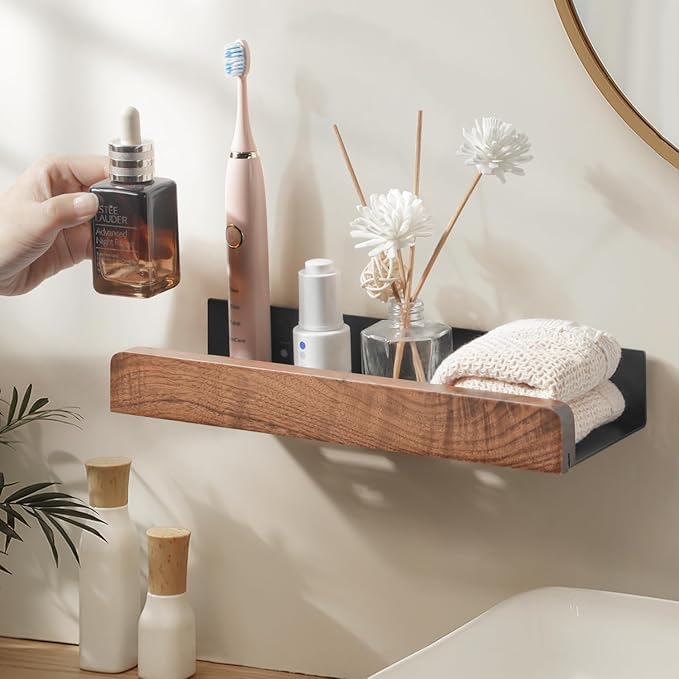 【バスラック】:高品質の素材を使用したシャワーラック ステンレススチール ウォールナット表面に粉体塗装で処理され、錆びにくく、頑丈で変形しにくい、耐久性と耐腐食性に優れています
