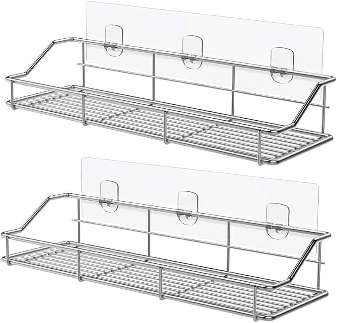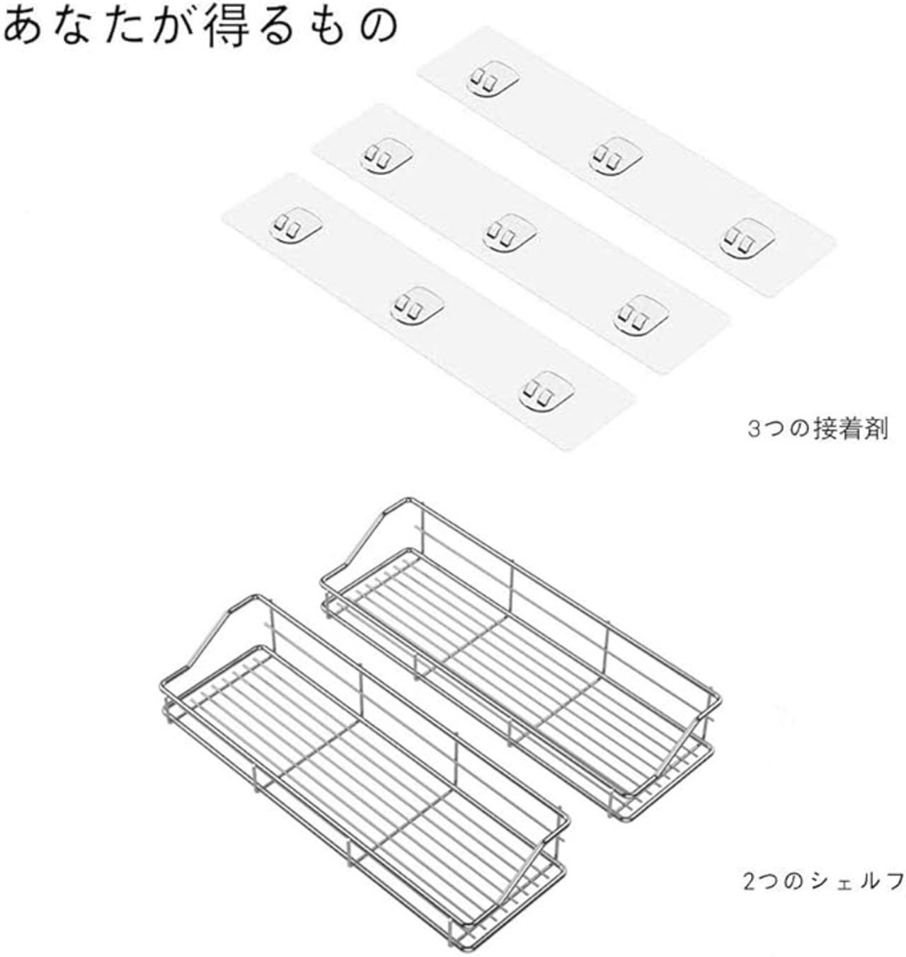 【サイズ&保証期間】サイズ:34x11x6cm 最大10kgの重量を負荷できます。 セット内容:2個ステンレス収納ラック、3個強力粘着フック、1英語説明書。 ご利用の間に何か質問があれば、お気軽にご連絡ください。最高のサービスを提供しております。