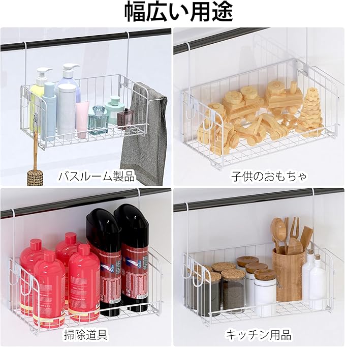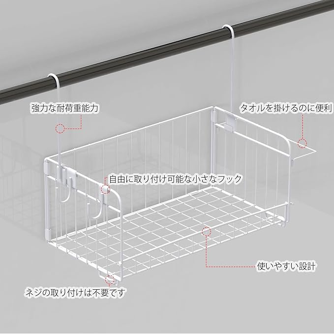 【適用場所】ロッド付きのさまざまな吊り下げデザインに適しており、バスルーム、キッチン、トイレなどで使用できます。タオルラック、洗濯シンク、キッチン、バスルームのさまざまなロッドに掛けることができます。
