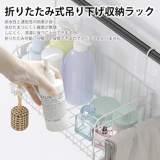 【折りたたみ式・取り外し可能】折りたたみ式バスルームバスケットは取り付けが非常に簡単で、折りたたんで収納できるのでスペースを節約できます。好ましい炭素鋼素材、環境に優しい焼付け塗装は、水の浸食を効果的にブロックします。