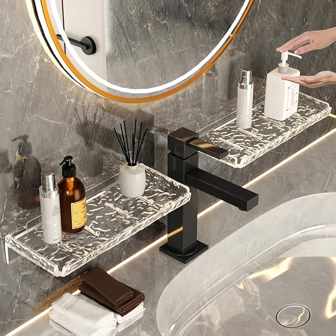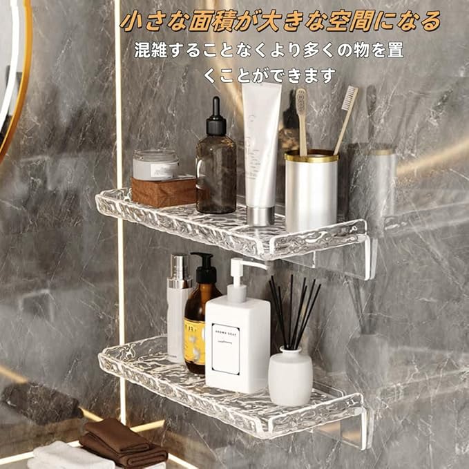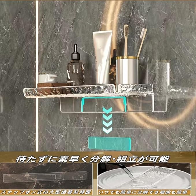 【アクリル素材】バスルームシェルフは高品質のABS製で、ステンレスより錆びにくく、長寿命です。強力な吸着力。スタイリッシュで実用的なデザイン、スペースの効率的な利用、快適な生活空間。