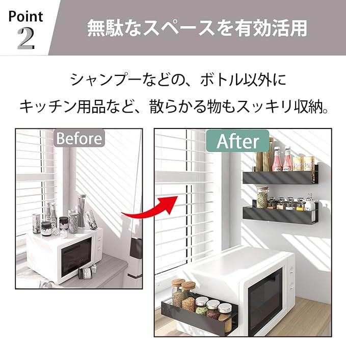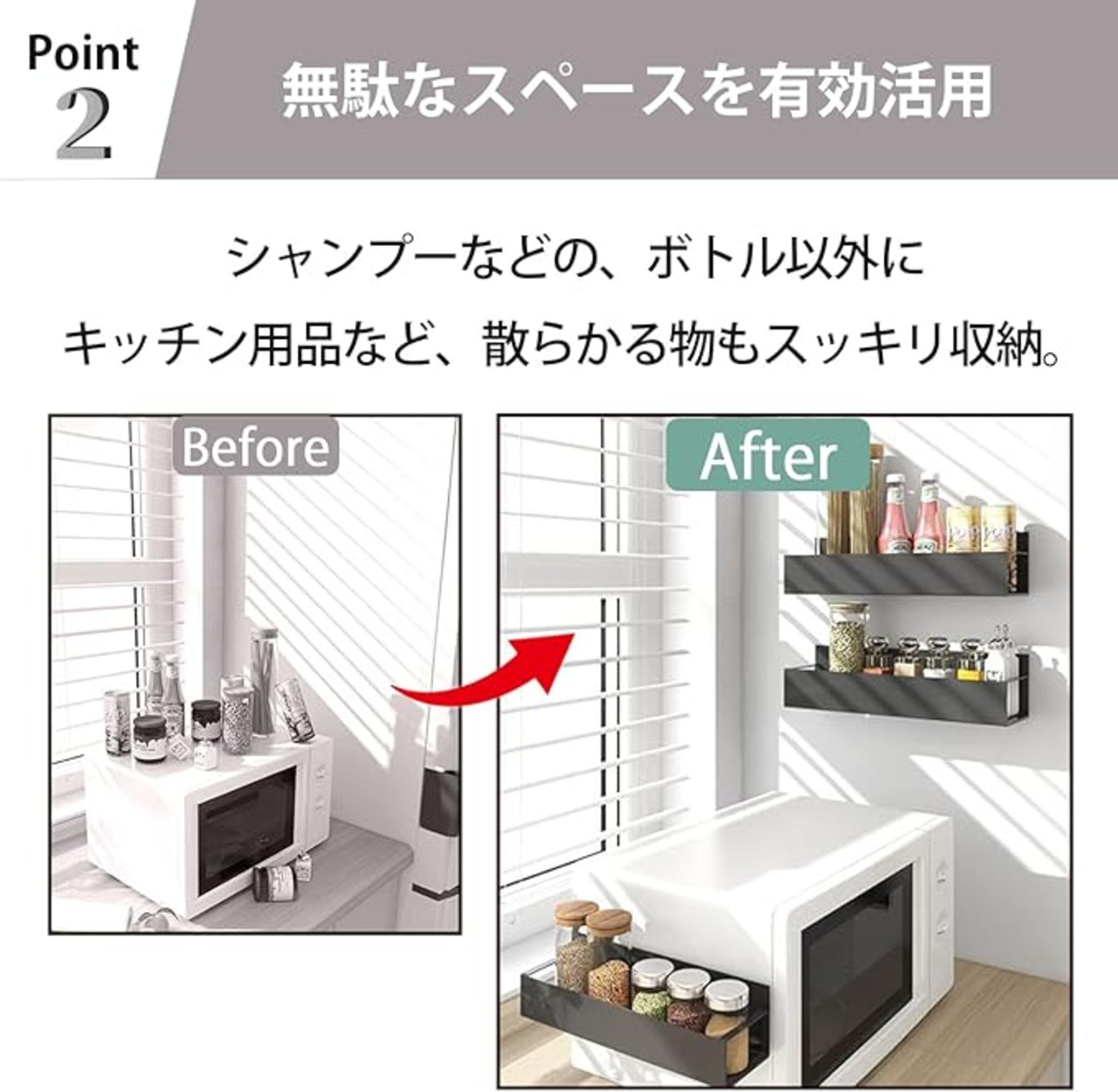 【取り付け簡単で高耐荷重】 強力マグネットで簡単に取り付けでき、各ラックの耐荷重は3.6kgです。 組み立て不要で、浴室や冷蔵庫の側面などに貼るだけでしっかり固定されます。