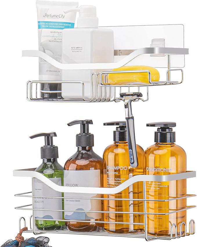 マモルイ(Mamorui) お風呂場収納ラック 浴室用収納棚 - シャワーラック 折りたたみ可能 マグネットバスケット 強力粘着剤 穴あけ不要 収納タワー バスルームオーガナイザー 浮かせる収納 - 洗面所整理 シャンプーホルダー 吊り下げタイプ すっきり収納 - 浴室用ラック x 2 | KAZESHOP