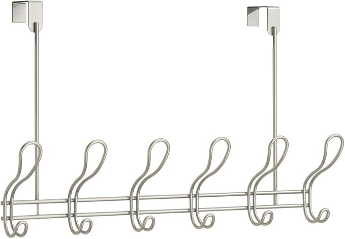 InterDesign ドア掛け用フック付きラックでクローゼットや浴室、玄関や寝室を上手に整頓しましょう。コートやジャケット、ローブやタオル、帽子などの収納に最適な丈夫なフックです。どんなお家にも似合う耐久性の高いデザインです。